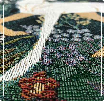 These custom tapestries are made on Jacquard looms, which provide exceptional detail and complexity. This technology captures the finest elements of your design by using punched cards to control individual threads. As a result, we can create intricate patterns and smooth color transitions that are hard to achieve by hand.