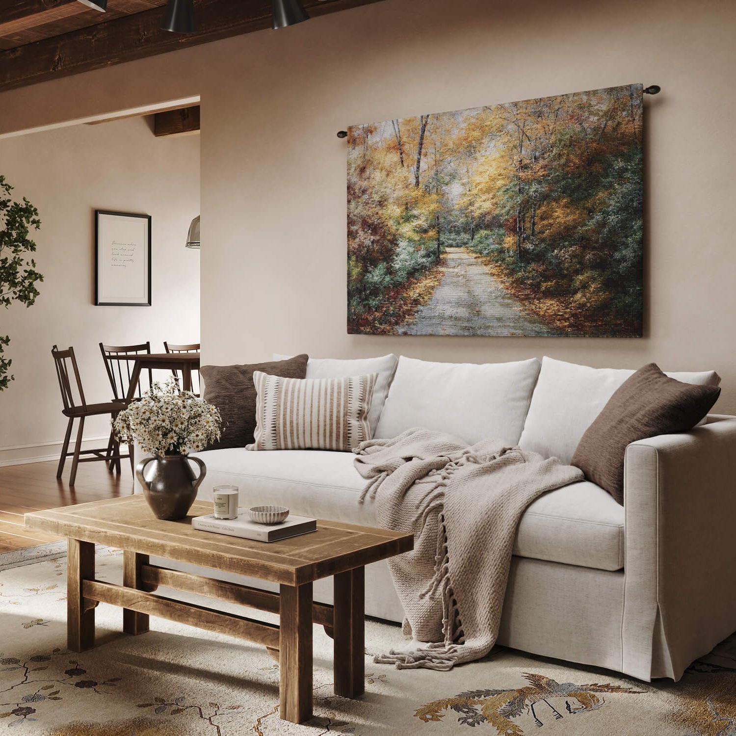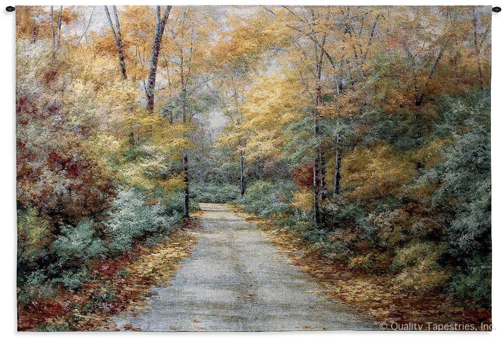 Autumn Trees Country Road Wall Tapestry