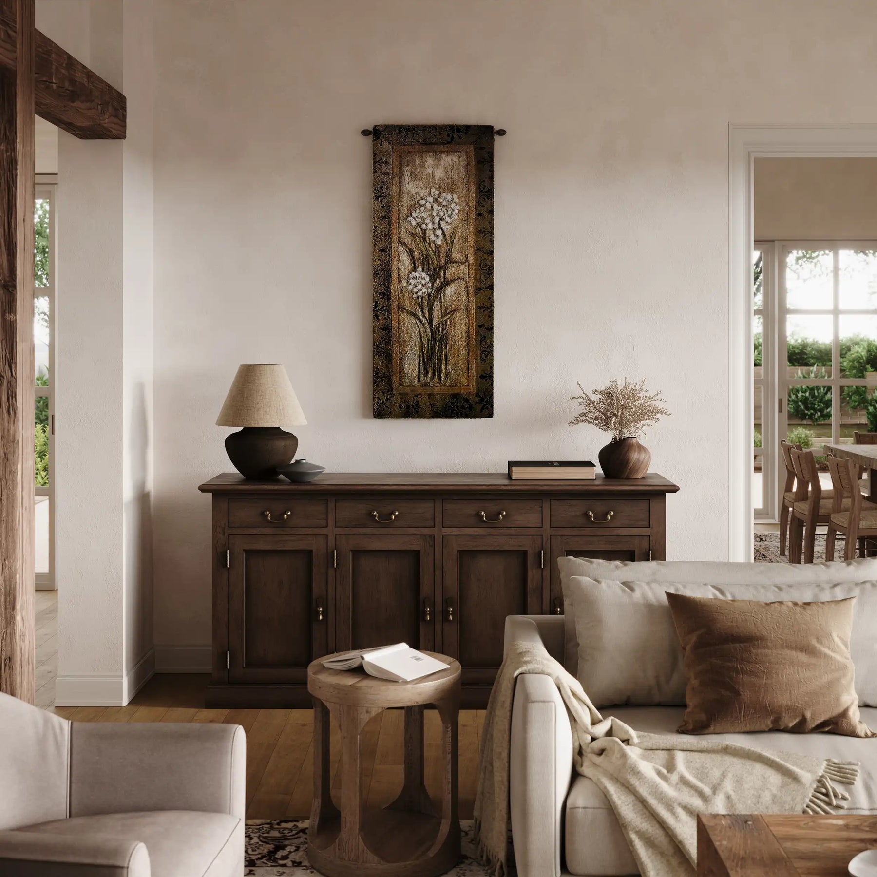 Elegant yet simple, this wall hanging goes with any decor. This wall tapestry is woven in North Carolina, USA and hand finished by skilled artisans.