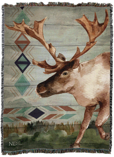 Animals Lodge Deer Elk 1 Blanket by Nicole DeCamp- Wildlife Lodge Cabin Gift Tapestry Throw Woven from Cotton - Made in The USA (72x54)