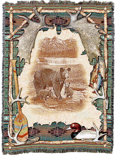 Antler Lodge Blanket - Bears Wildlife Lake Lodge Cabin Gift Tapestry Throw Woven from Cotton - Made in The USA (72x54)
