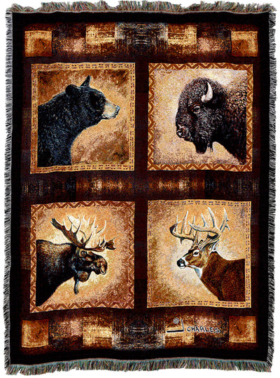 Big Game Heads Blanket by Greg Giordano - Bear Bison Elk Deer Wildlife Lodge Cabin Gift Tapestry Throw Woven from Cotton - Made in The USA (72x54)