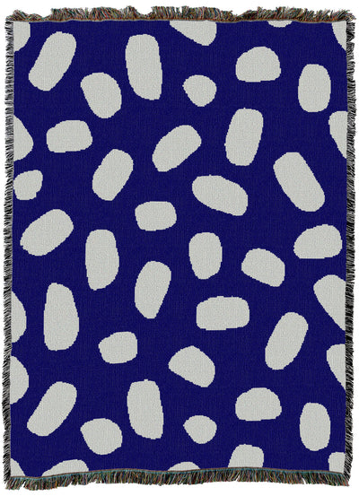Blue White Pebble Blanket - Abstact Art - Gift Tapestry Throw Woven from Cotton - Made in The USA (72x54)