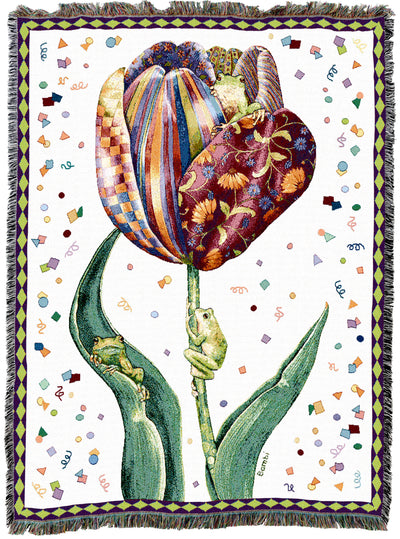 Confetti Tulip Blanket by Bambi Papais - Tree Frog Garden Floral Gift Tapestry Throw Woven from Cotton - Made in The USA (72x54)