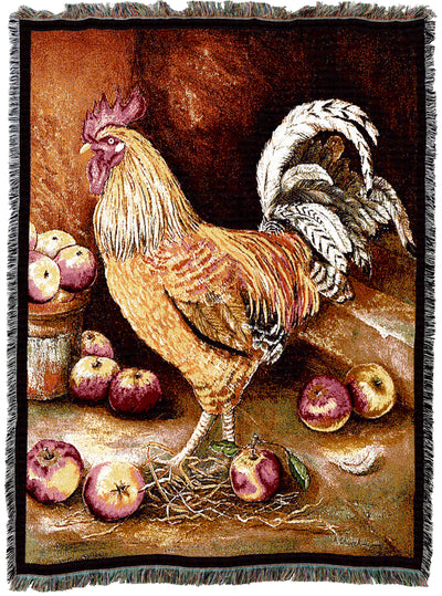 English Cockerel Rooster Blanket by Alexandra Churchill - Country Farm Gift Tapestry Throw Woven from Cotton - Made in The USA (72x54)