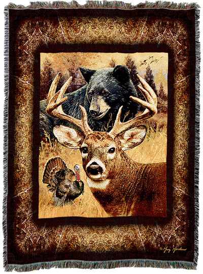 Hunter's Dream Blanket by Greg Giordano - Deer Buck Turkey Bear Wildlife Lodge Cabin Gift Tapestry Throw Woven from Cotton - Made in The USA (72x54)