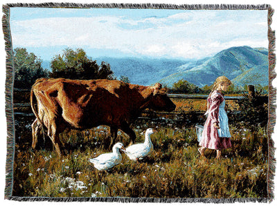 Cows Morning Walk Blanket by Robert Duncan - Early America Country Farm Gift Tapestry Throw Woven from Cotton - Made in The USA (72x54)