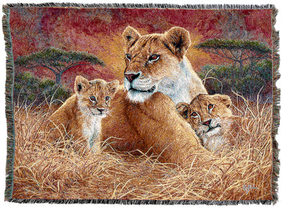Motherly Lioness and Cubs Blanket by Lucie Bilodeau - Gift Tapestry Throw Woven from Cotton - Made in The USA (72x54)