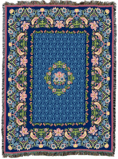 William Morris Strawberry Thief Border Blanket - Arts & Crafts - Gift Tapestry Throw Woven from Cotton - Made in The USA (72x54)