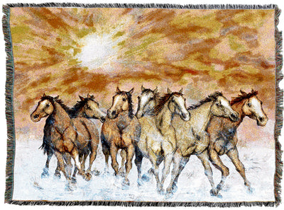 Sunset Run Blanket by John Saunders - Gift for Horse Lovers - Western Throw Woven from Cotton - Made in The USA (72x54)