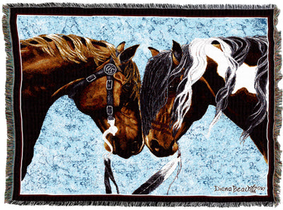 Warriors Truce Blanket by Diana Stamper - Equestrian Gift for Horse Lovers - Tapestry Throw Woven from Cotton - Made in The USA (72x54)