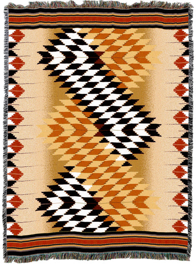 Whirlwind Sand Blanket - Southwest Native American Inspired - Gift Tapestry Throw Woven from Cotton - Made in The USA (72x54)