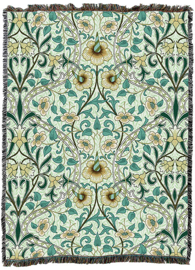 William Morris Daffodil Meadow Blanket - Arts & Crafts - Gift Tapestry Throw Woven from Cotton - Made in The USA (72x54)