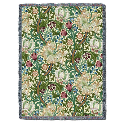 William Morris Golden Lily Blanket - Arts & Crafts - Gift Tapestry Throw Woven from Cotton - Made in The USA (72x54)