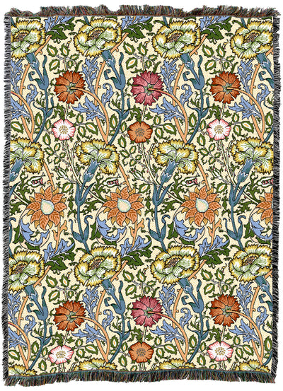 William Morris Pink and Rose Blanket - Arts & Crafts - Gift Tapestry Throw Woven from Cotton - Made in The USA (72x54)