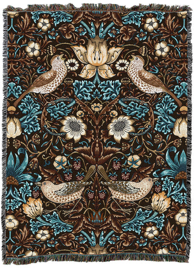William Morris Strawberry Thief Walnut Blanket - Arts & Crafts - Gift Tapestry Throw Woven from Cotton - Made in The USA (72x54)