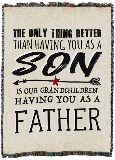 The Only Thing Better Son Grandchildren Father Blanket - Gift Tapestry Throw Woven from Cotton - Made in The USA (72x54)