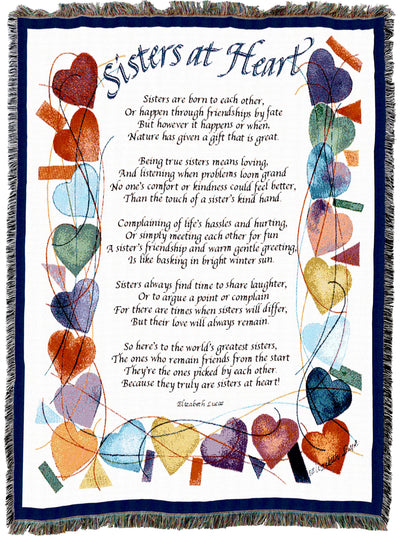 Sisters at Heart Poem Blanket by Elizabeth Lucas Designs - Gift Tapestry Throw Woven from Cotton - Made in The USA (72x54)