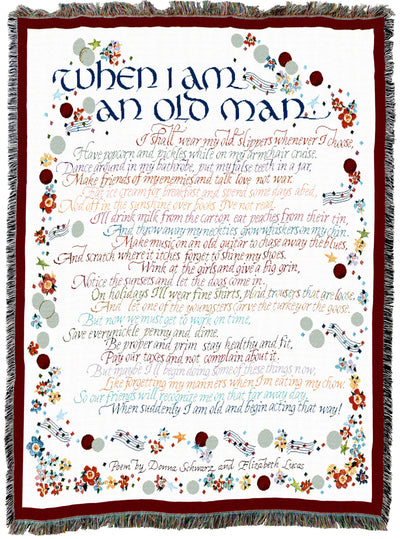 When I Am an Old Man Blanket by Elizabeth Lucas Designs - Gift Tapestry Throw Woven from Cotton - Made in The USA (72x54)