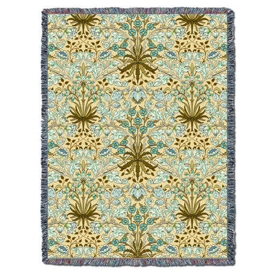 William Morris Hyacinth Rain Blanket XL - Arts & Crafts - Gift Tapestry Throw Woven from Cotton - Made in The USA (82x62)