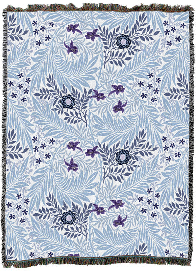 William Morris Larkspur Waves Blanket XL - Arts & Crafts - Gift Tapestry Throw Woven from Cotton - Made in The USA (82x62)