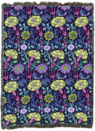 William Morris Pink and Rose Peacock Blanket XL - Arts & Crafts - Gift Tapestry Throw Woven from Cotton - Made in The USA (82x62)