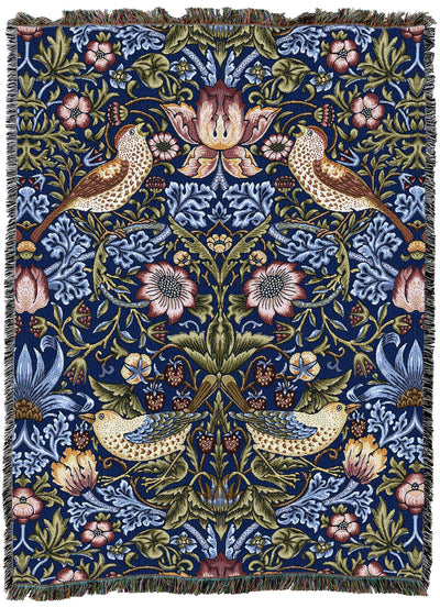 William Morris Strawberry Thief Indigo Blanket XL - Arts & Crafts - Gift Tapestry Throw Woven from Cotton - Made in The USA (82x62)