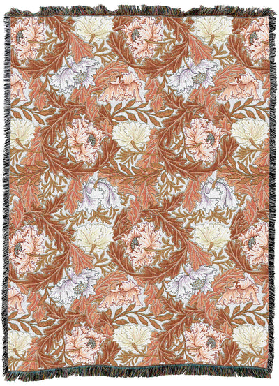 William Morris Wreath Copper Blanket XL - Arts & Crafts - Gift Tapestry Throw Woven from Cotton - Made in The USA (82x62)