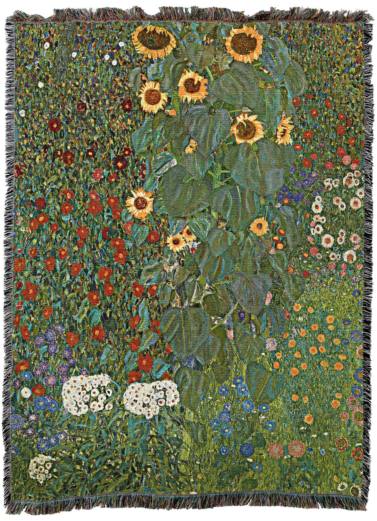 Farm Garden with Sunflowers Blanket by Gustav Klimt - Fine Art Gift Tapestry Throw Woven from Cotton - Made in The USA (72x54)