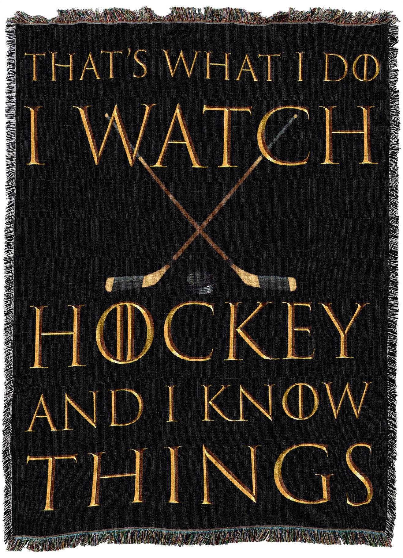 $6675I Watch Hockey Blanket - Sports Fan Coach Team Gift Tapestry Throw Woven from Cotton - Made in The USA (72x54)