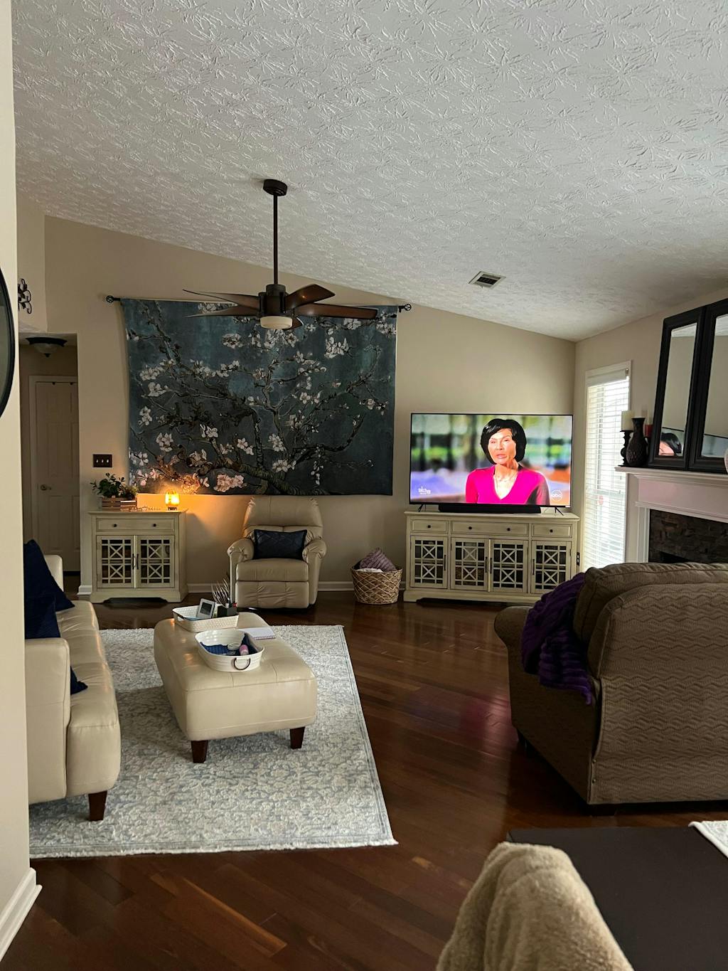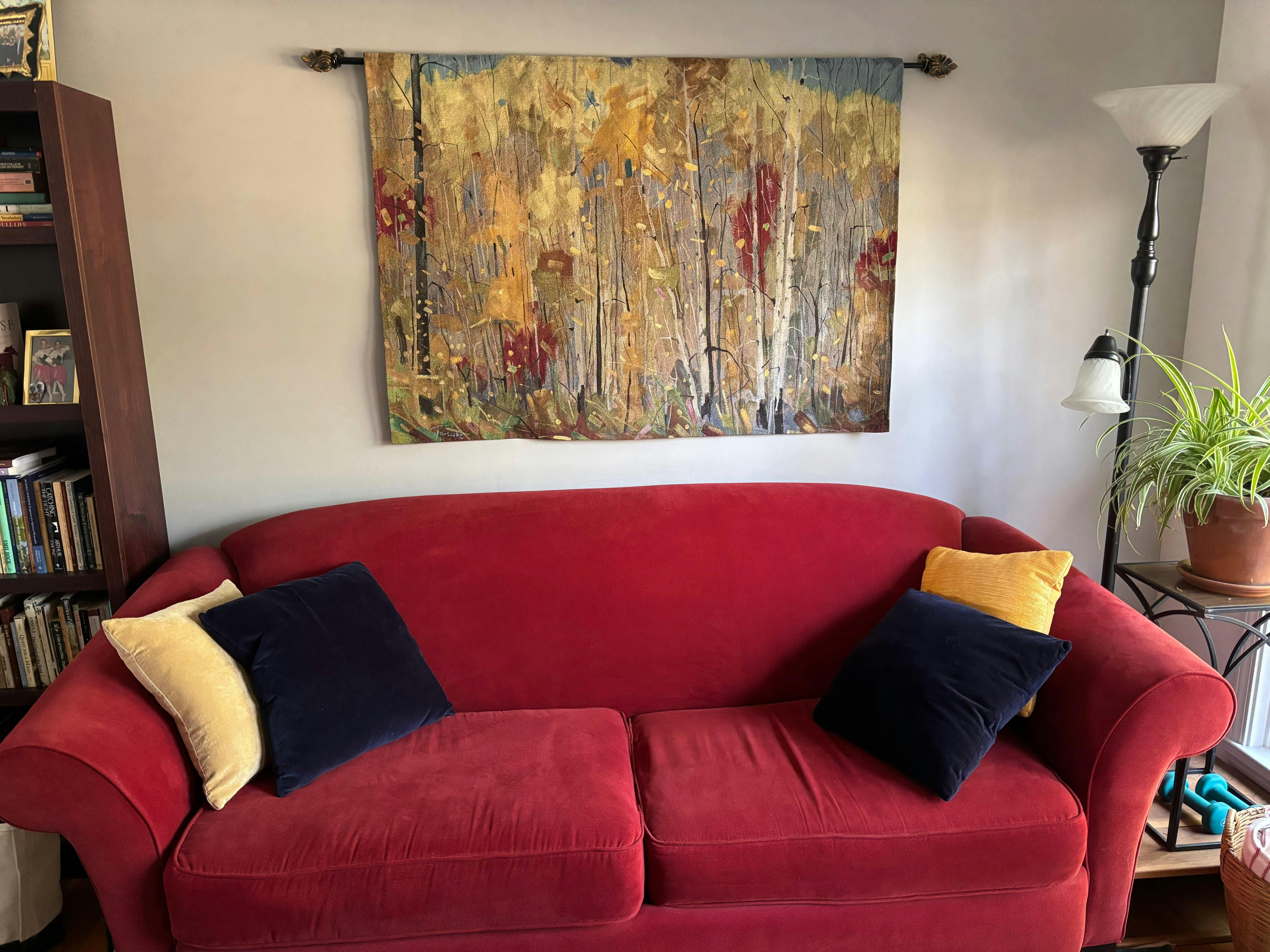 Gorgeous tapestry, the focal piece for our main living area. I do however have a suggestion that would make it perfect. I have several tapestries I purchased whilst living in Europe & they all have reinforced backing which allows them to hang nicer/flatter & gorgeous tabs that just elevate the look of the tapestry. I’m keeping because it perfectly matches my decor & I’m having the lining/reinforcement added.