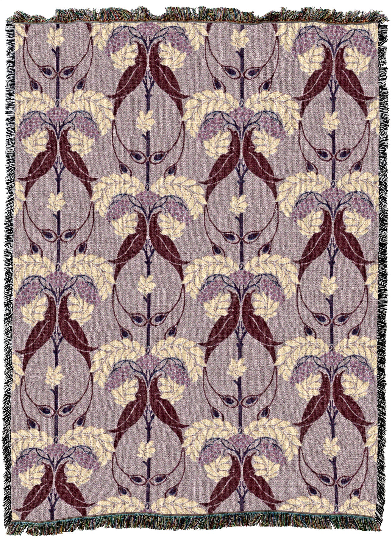 $6675C.F.A. Voysey Rowan Tree Claret Blanket - Arts & Crafts - Gift Tapestry Throw Woven from Cotton - Made in The USA (72x54)