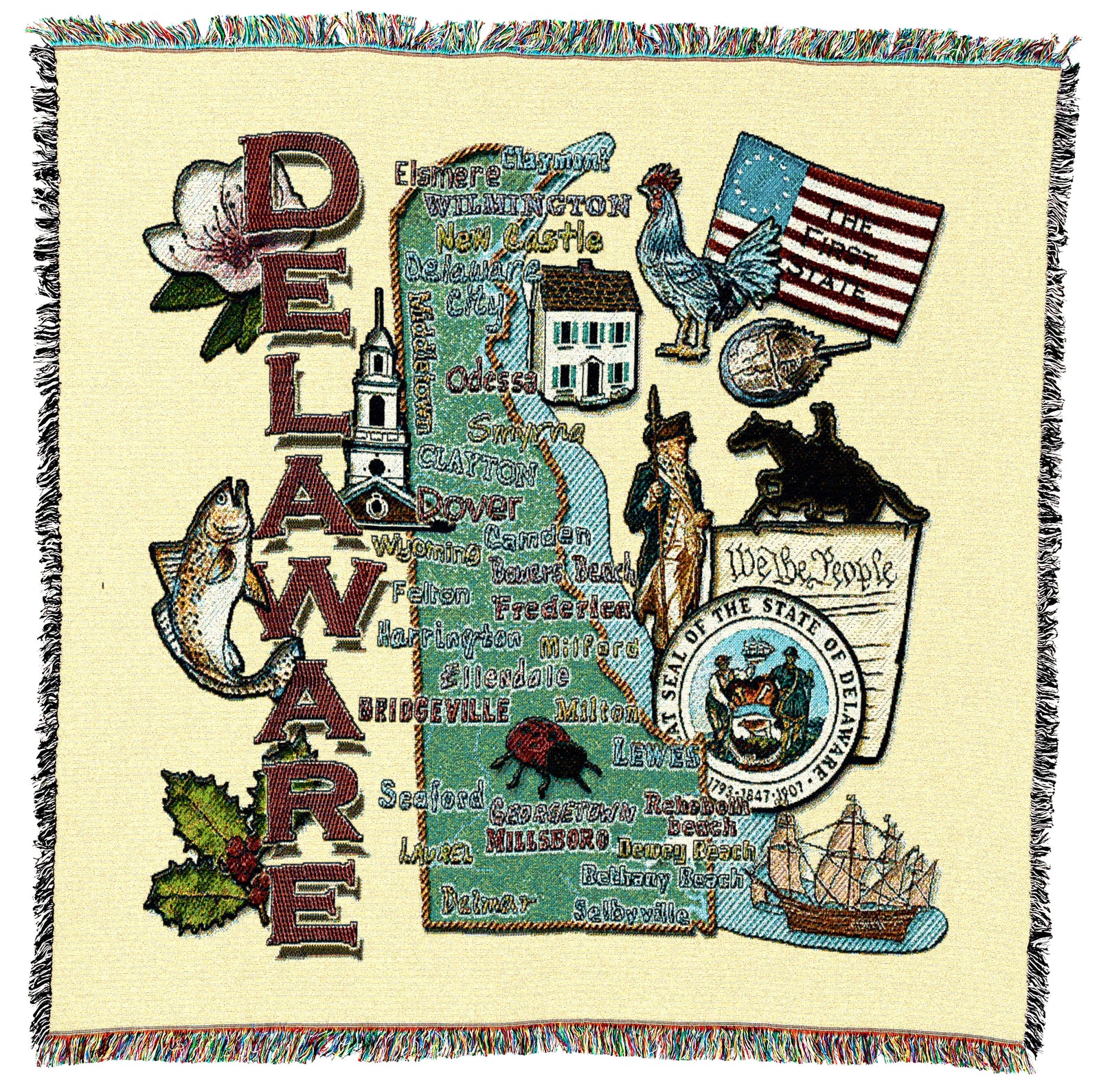 State of Delaware Lap Square Blanket - Gift Tapestry Blanket Throw Woven from Cotton - Made in The USA (54x54)