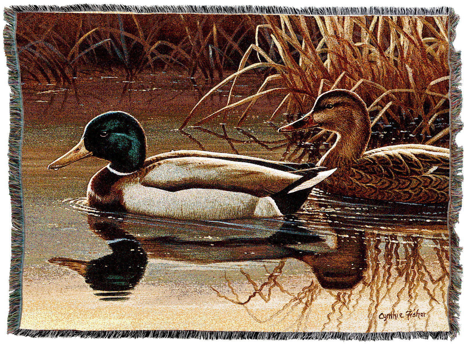 $6675Quiet Couple Blanket by Cynthie Fisher - Ducks Lake Lodge Cabin Gift Tapestry Throw Woven from Cotton - Made in The USA (72x54)